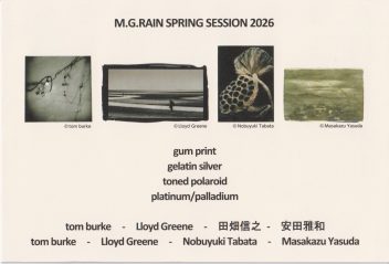 launched on 14 March 2015 with main focus on "Recurrence to The Basics of Photograph". M.G.RAIN mainly carries on monochrome works of contemporary artists with classical method : Platinum Print / Carbon Print / Salted Paper / Cyanotype / Vandyke Print / Kallitype / Daguerréotype / Wetplate Collodion / Gum Print / Gelatin Silver Print / Photogram / Pinhole / Photogravure etc.